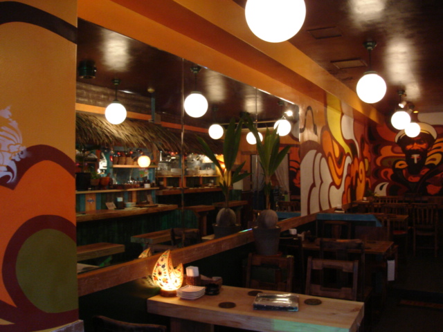 アジアの浜辺のオープン屋台をイメージし、波の音がかすかに流れる店内。