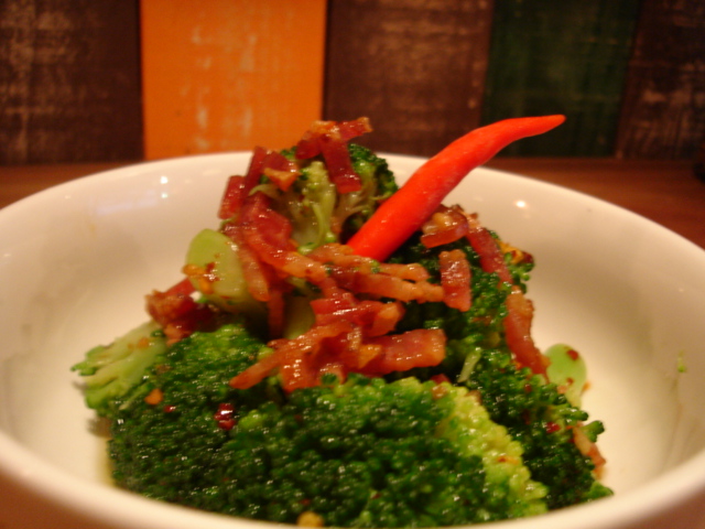 ・冷製ブロッコリーとカリカリベーコンのタイ唐辛子マリネ ¥530